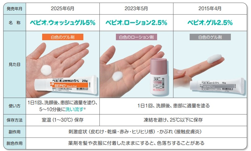 ベピオウォッシュゲルは、2025年6月に、いちばん新しいニキビ治療薬として、さらに改良されて販売されました。